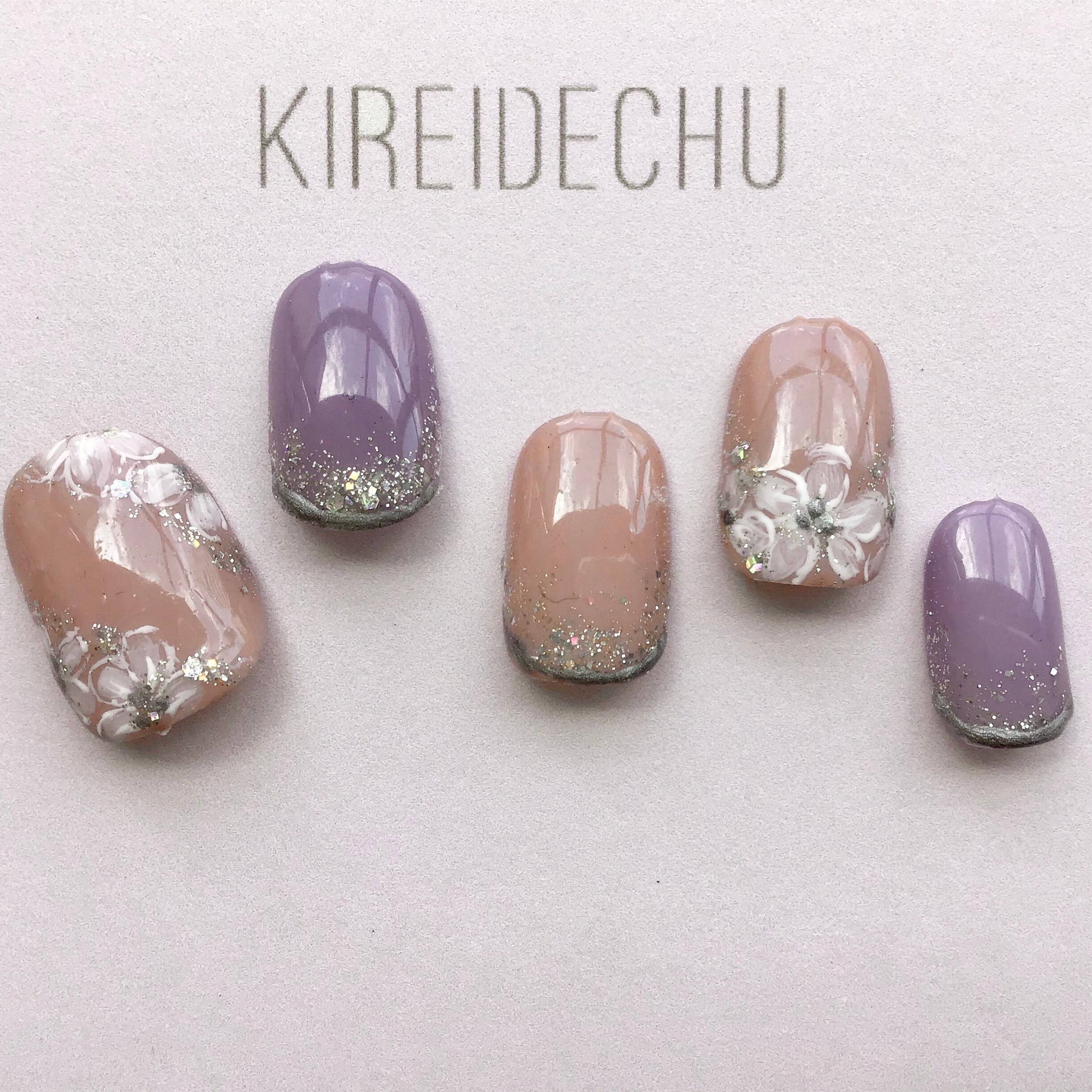 お花の手描きアートとラメを乗せた可愛いデザイン⭐︎