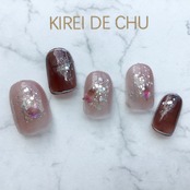 くすみピンクとボルドーの大人きれいめニュアンスネイル♡
