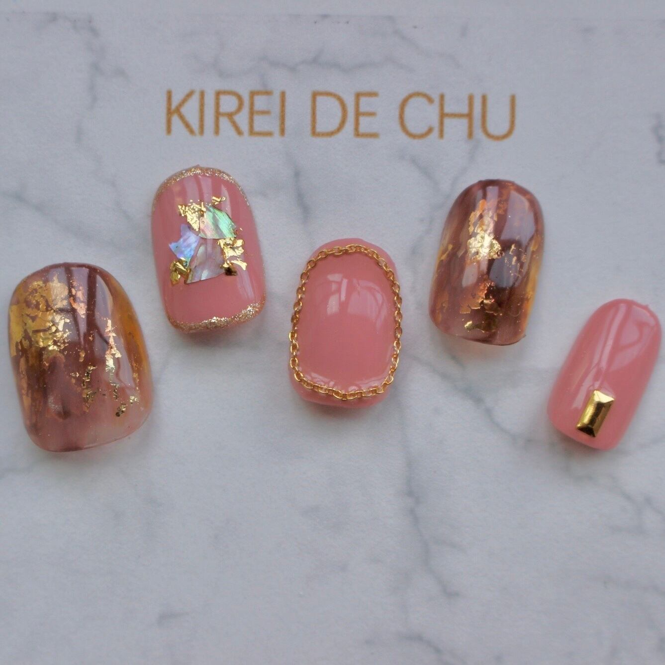ブラウン✖️ゴールド✖️ピンクが秋らしく可愛いデザイン♡