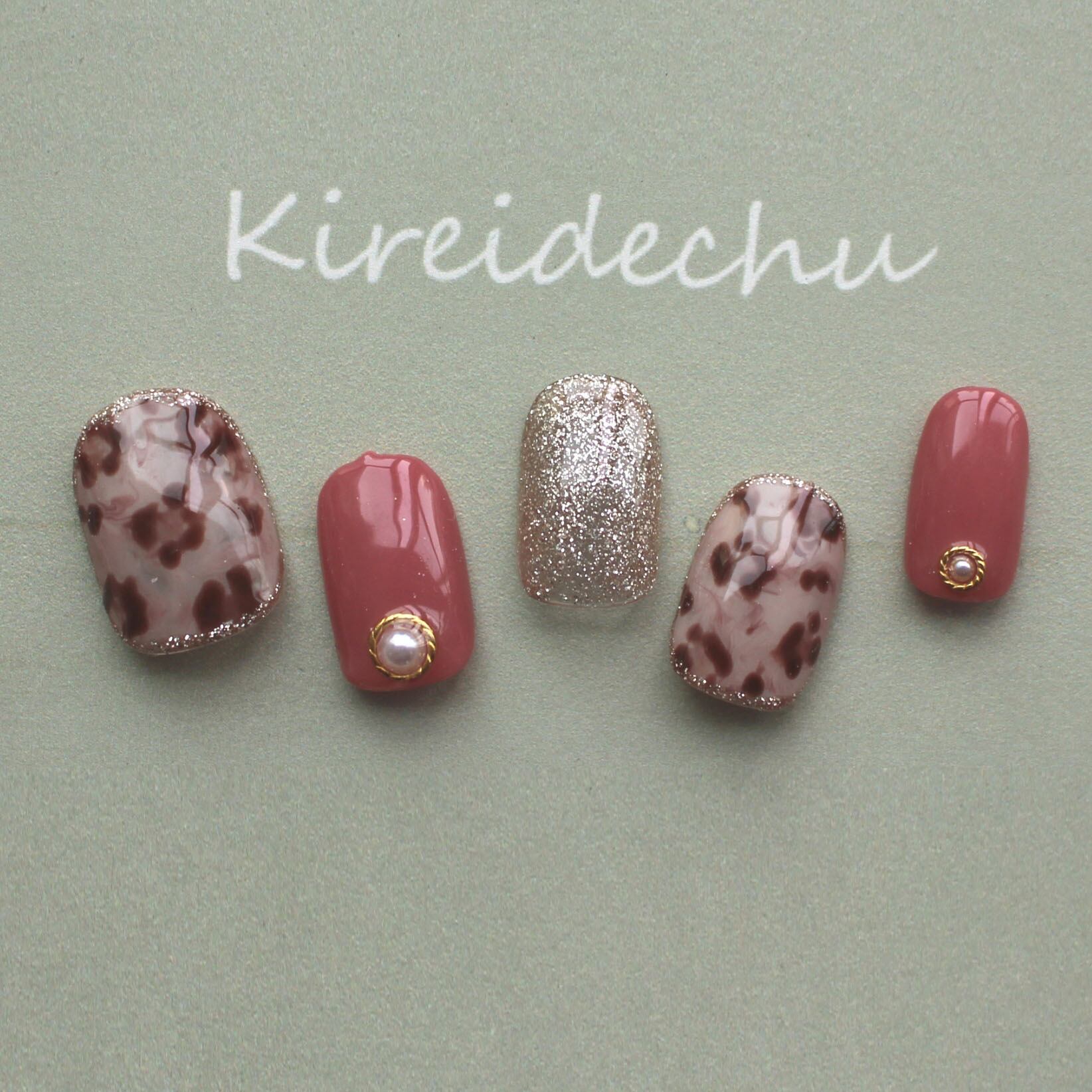 トレンドのレオパード柄とサーモンピンクを合わせた可愛いデザイン❤️